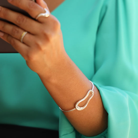 Bracelete Oval Orgânico Vazado Banhado a Prata