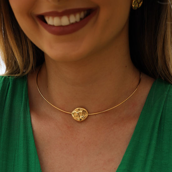 Choker Aro Com Pingente Oval Orgânico Banhado a Ouro 18k